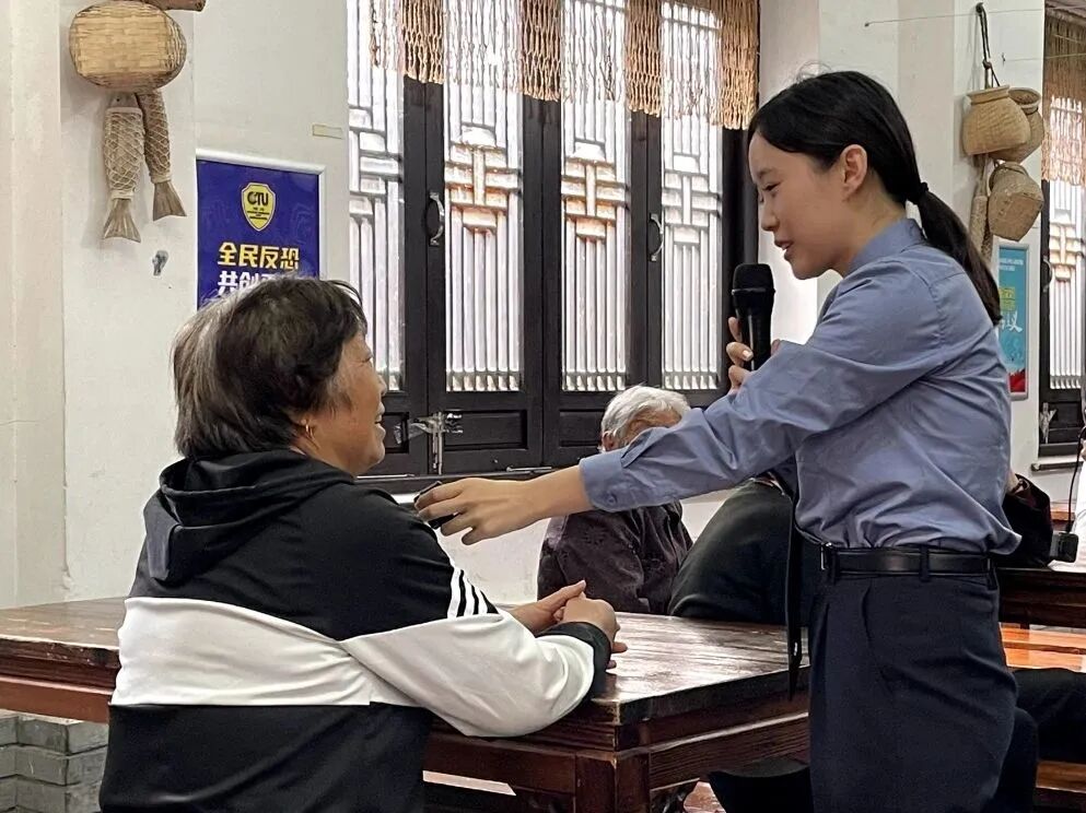 活动现场,检察官向当地村民发放反诈主题礼包,并播放由干警原创的反诈宣传视频,通过还原多种养老骗局,生动展示不法分子的常用骗术。