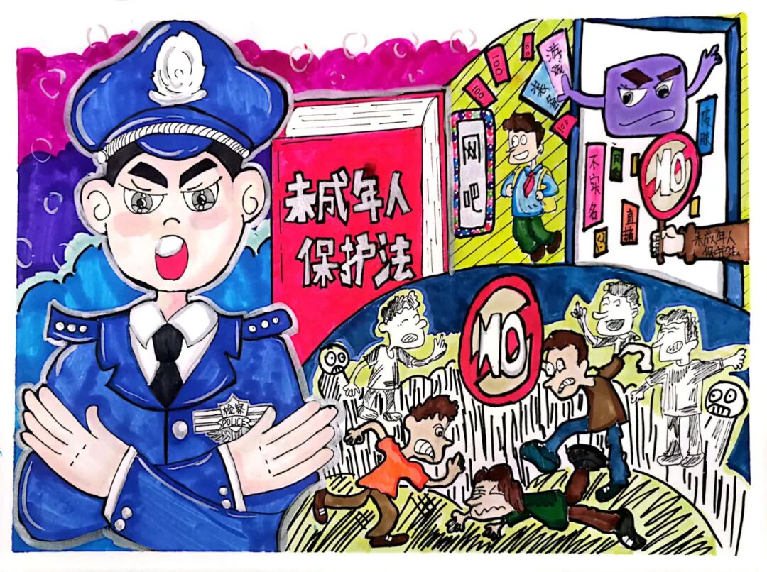 由最高检新闻办公室、最高检第九检察厅、检察日报社联合在全国范围开展的第二届“未成年人法治手绘画廊”征集活动,参赛作品展播进行时!