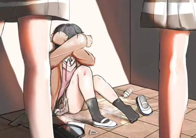 此画作描绘的是遭受到校园欺凌的一名学生,被撕毁的书、泼向她的水和粉笔灰、被殴打出的伤痕都展现了校园欺凌的严重性。告诫人们应该拒绝沉默,反对校园欺凌的出现,给予青少年一个健康向上的校园环境。
