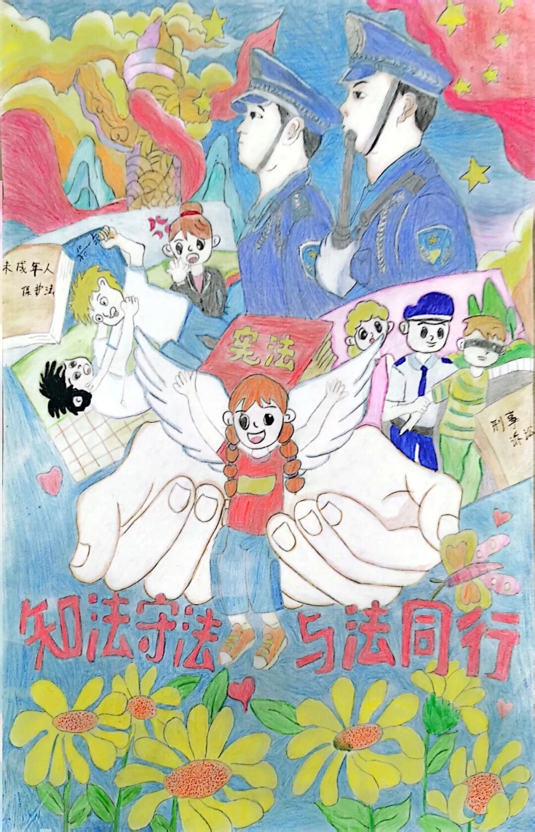 在少年儿童成长的道路上,与法相依,《未成年人保护法》无时无刻不在身边关爱着少年儿童的我们。成长的路途上,我们如海上的小船,很容易迷失方向,幸好有你们一路为我们保驾护航,指引着正确的方向。
