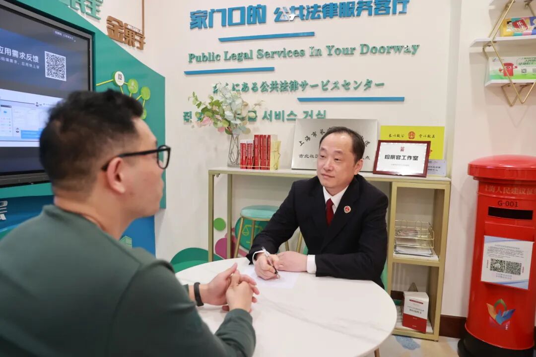 上海市长宁区检察院检察官在立法联系点听取群众意见建议。